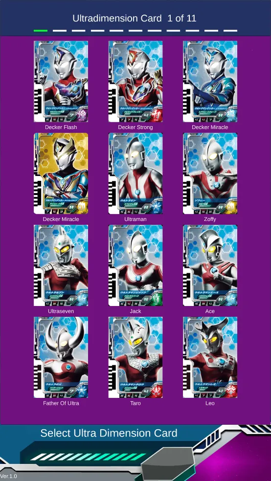 一进入游戏,整个屏幕被奥特 D 闪光剑占据。点击右下角闪烁的奥特次元卡盒,里面全是奥特元次卡牌,随着德凯奥特曼电视剧更新,卡牌也会增多哦。选一张喜欢的卡牌插进闪光剑,就能变身啦!帅气的变身音效响起,耀眼光芒一闪,霸气的德凯奥特曼形象就出现啦!