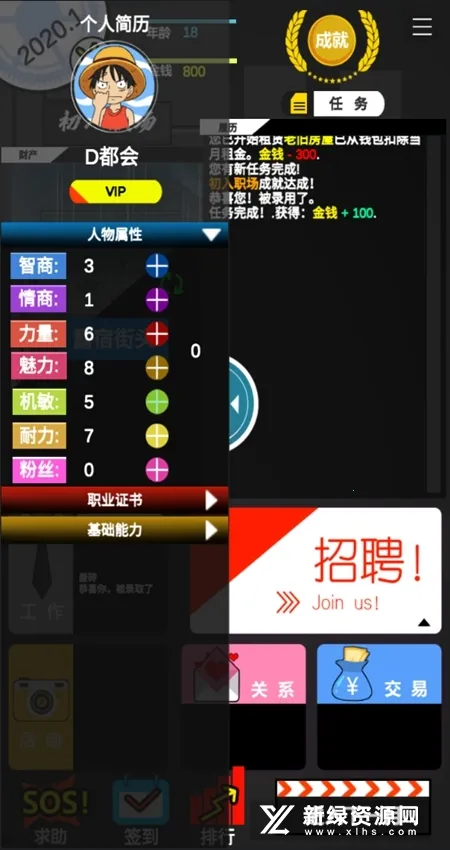4、角色属性界面提供分配属性点的机会,比如智商、情商、力量、魅力、机敏、耐力和粉丝,合理配置助力职业发展。