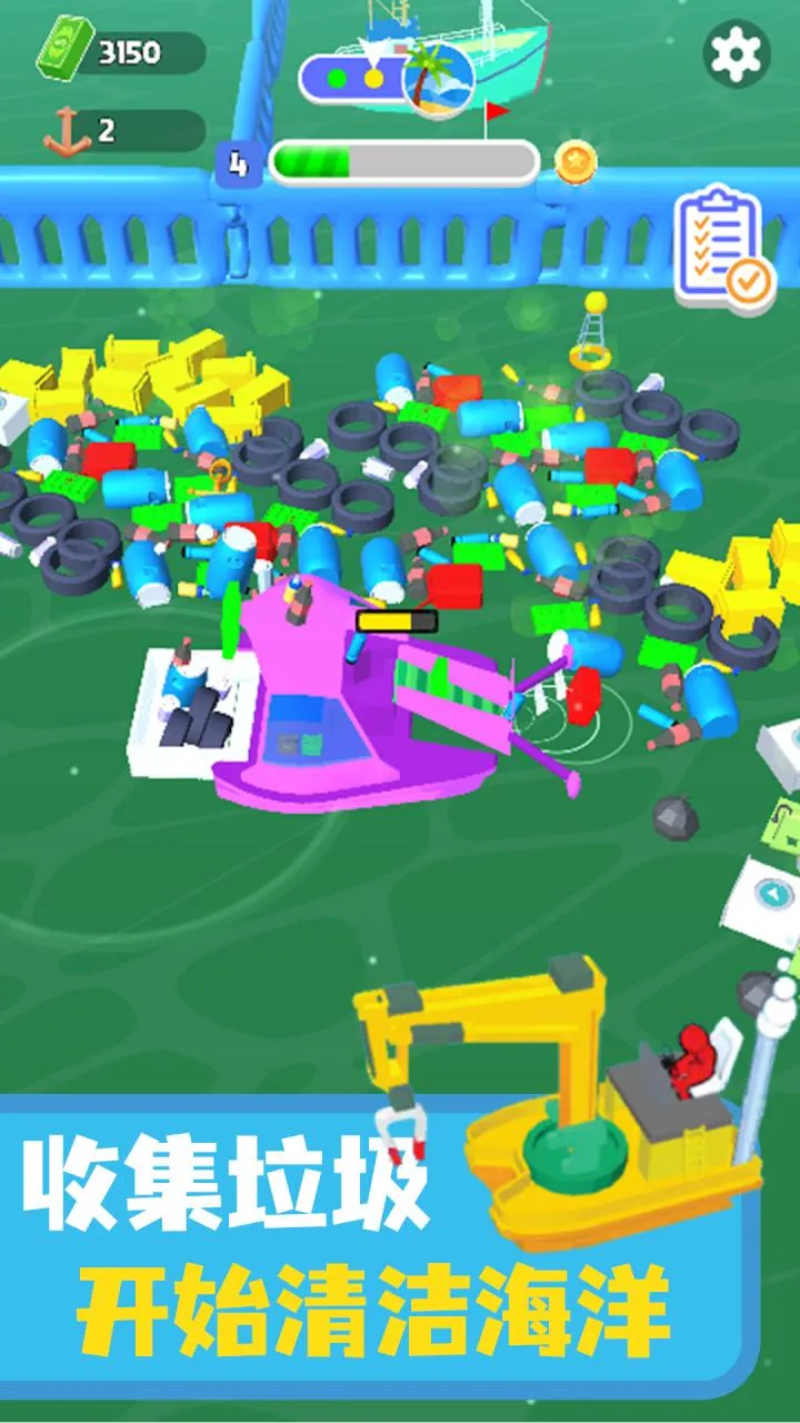 在游戏中,你将化身为海洋清洁工,深入各个区域捡拾垃圾。这里有丰富多样的垃圾种类,给你带来不同挑战。游戏操作简单,滑动屏幕控制轮船前行,靠近油污自动吸附。收集金币还能解锁装备提升清洁效率。