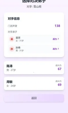 4. 门派对决争江湖:与其他门派派出的弟子展开对决,凭借战斗力一较高下,从无名小派逐步迈向武林霸主,每一步选择都关乎门派兴衰。