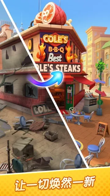 2、修复餐厅:合成物品完成订单,帮助居民修复餐厅,解锁更多食谱美食,让小镇恢复生机。