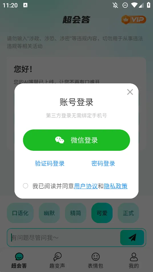 AI全能输入法是一款功能超丰富的多功能输入法工具。它有50万系统词库,覆盖面广且选词准,输入界面简洁流畅,能满足日常沟通。强大的AI聊天技术,提供有趣高情商回复,在恋人、职场等关系中都适用。还能根据聊天场景自动生成话题和回复建议,有海量土味情话和聊天热梗。输入关键词就能轻松获取多样表情包,一键发送超方便。多种变声效果,如少女音、萝莉音等,让语音聊天更有趣。它集多种功能于一体,无需在多个App间切换。不管是职场沟通、朋友闲聊还是恋爱,都能应对自如。而且AI会不断学习你的语言风格和偏好,提供更贴合个性的建议。有了它,聊天变得轻松有趣,让你告别尬聊,成为聊天达人,安全可靠又实用,值得一试。