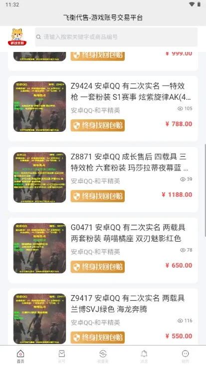 严格审核卖家,保证账号真实性和质量,还提供终身包赔服务,让用户无后顾之忧。