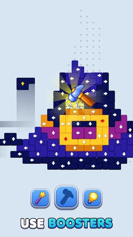 1. 独特的点击消除机制:通过点击带有箭头的方块,将它们按正确顺序滑出棋盘,带来全新游戏体验。
