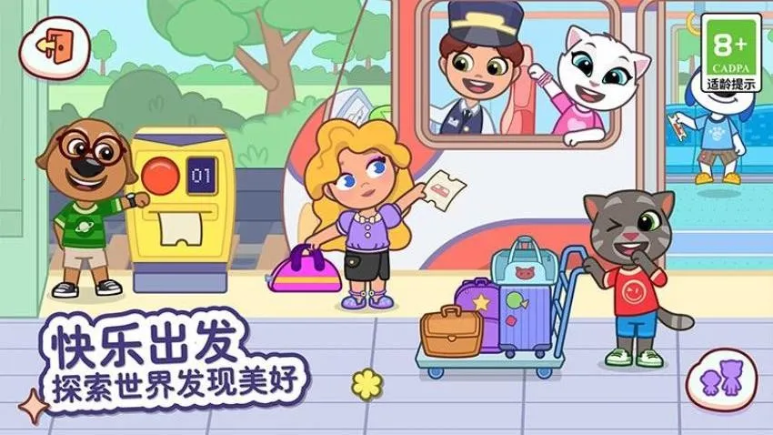 自由创造角色:在汤姆猫小镇,能扮演任何想扮演的人,从大量选项中选择,用喜欢的颜色、服装和发型打造专属角色,发挥创造力。