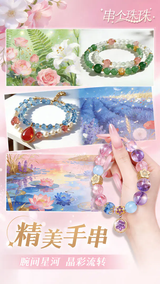 通过新颖有趣的小游戏解锁不同种类珠子,考验反应能力与创造力,成功完成挑战可获丰富资源支持手串制作。