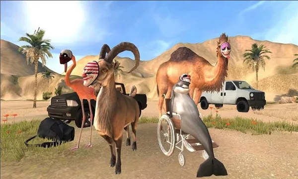 1、可操控角色多样:玩家不仅能操控山羊,还有飞翔的火烈鸟、坐在轮椅上的海豚、吐痰的骆驼等诸多动物伙伴,后期还能解锁更稀有的动物,带来全新畅玩体验。