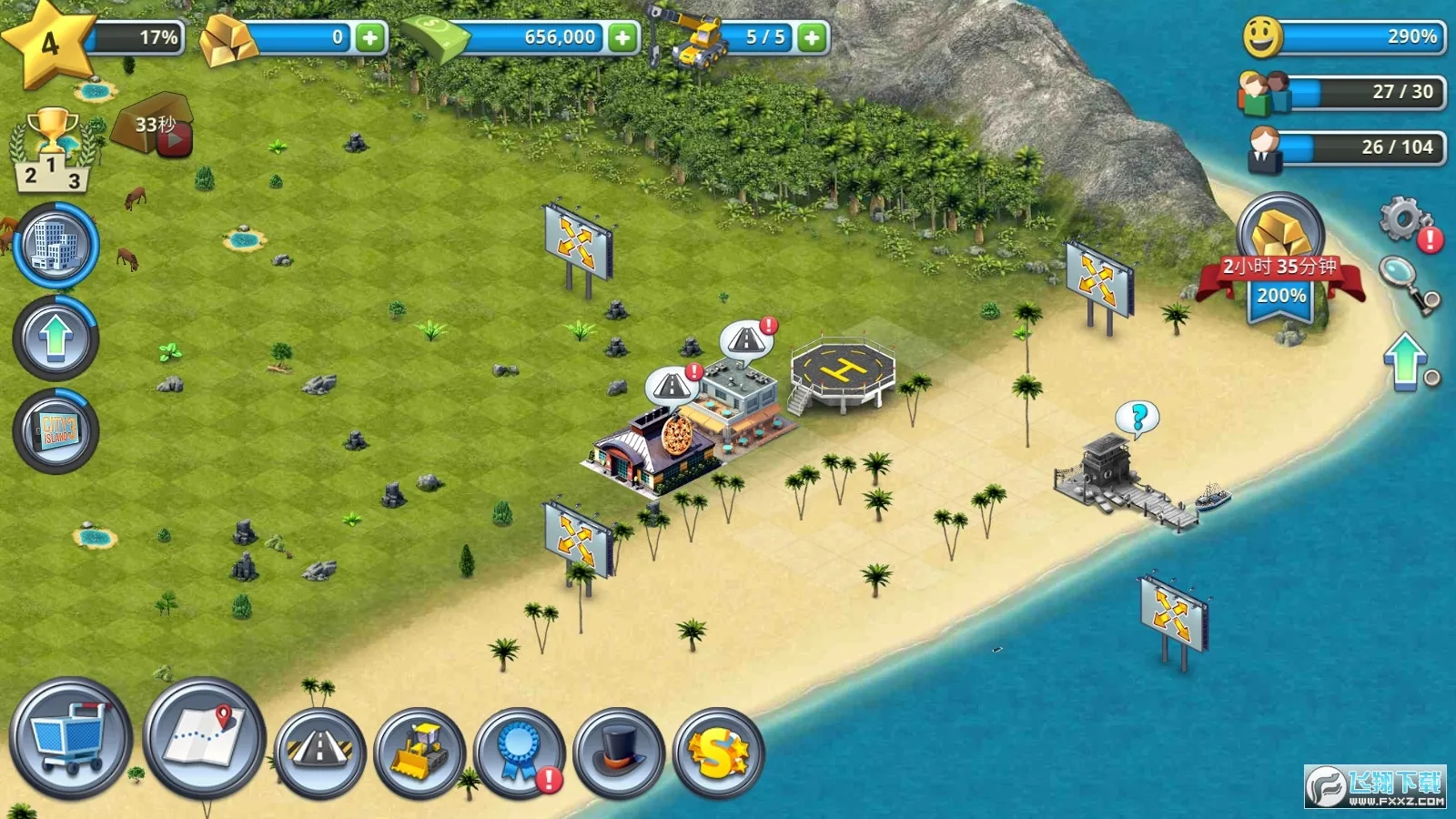 丰富多样的岛屿解锁:升级时能解锁如旅游天堂岛屿、火山岛、沼泽地、沙漠等不同岛屿,让城市建设有更多选择。
