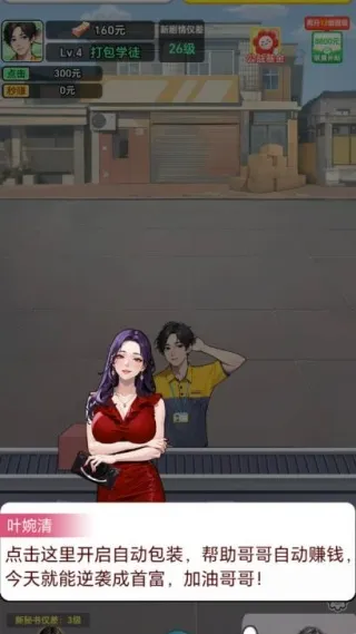 3. 轻松成长:支持挂机,离线阶段公司自动运行;点击式操作简单直观,升级自动包装功能提升处理效率;完成任务或升级可领礼包奖励,助力快速提升收益。