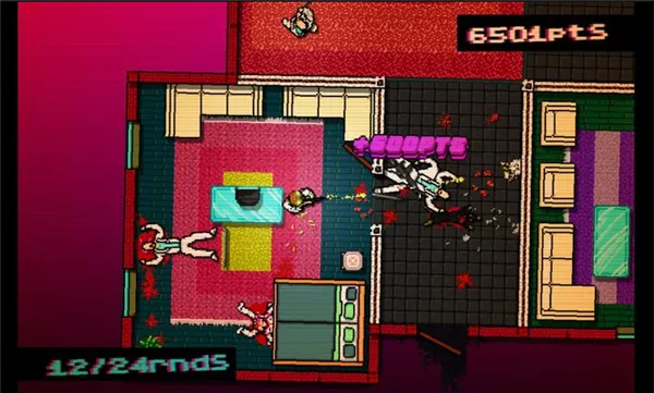 暴力美学呈现:游戏设定在充满霓虹灯的1989年迈阿密,玩家扮演杀手执行残酷任务,一击必杀的硬核设定,搭配血腥复古风格,带来极致刺激的暴力闯关体验。
