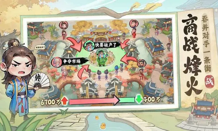 4. 创新经营玩法:将现代直播带货引入古代市井,店铺有互动设计,升级店铺招募伙计自动赚铜钱,从流动商贩到富甲一方打造商业帝国。