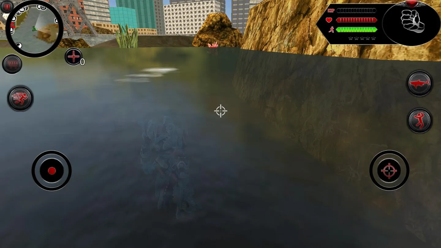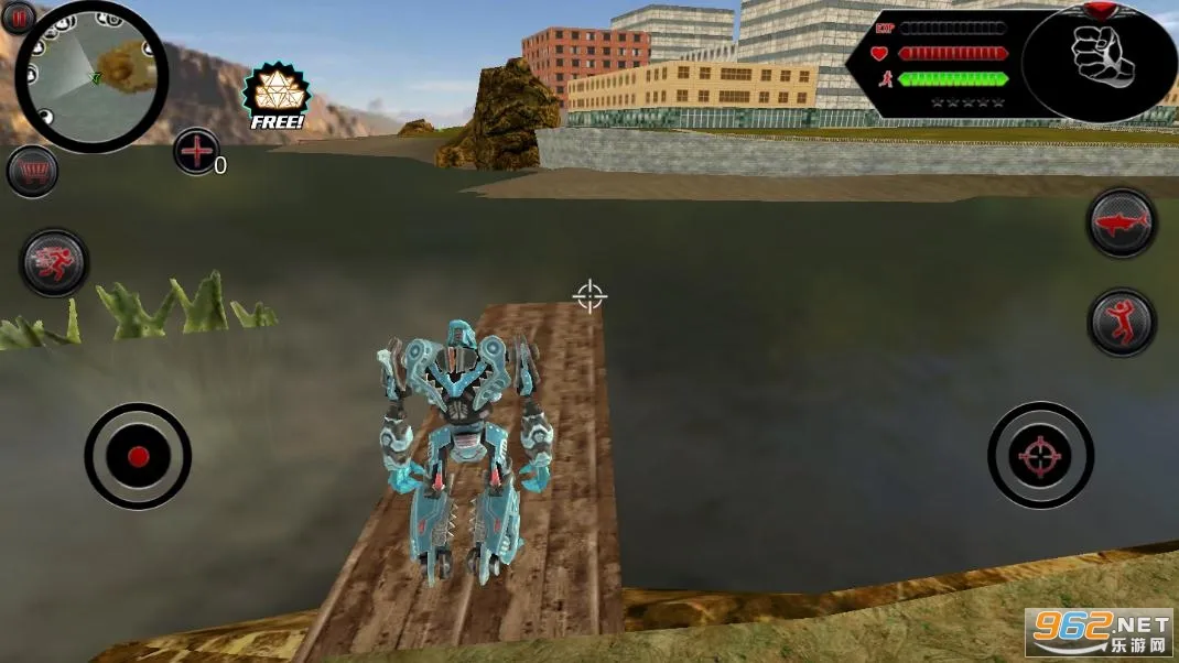 2、独特变形玩法:机器人可变化为3D真实鲨鱼在水中自由潜行,也能变成人形在模拟真实城市中自由行走,进入水里还能切换形态,带来别样游戏感受。