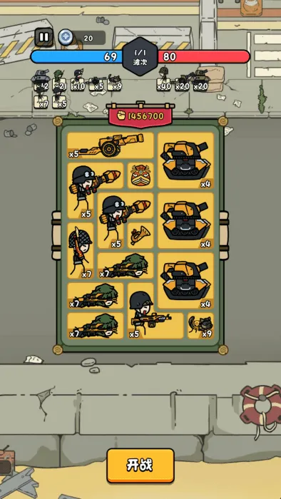 全部放入后你可以看到士兵的排列数量,合成越多士兵也就越多。