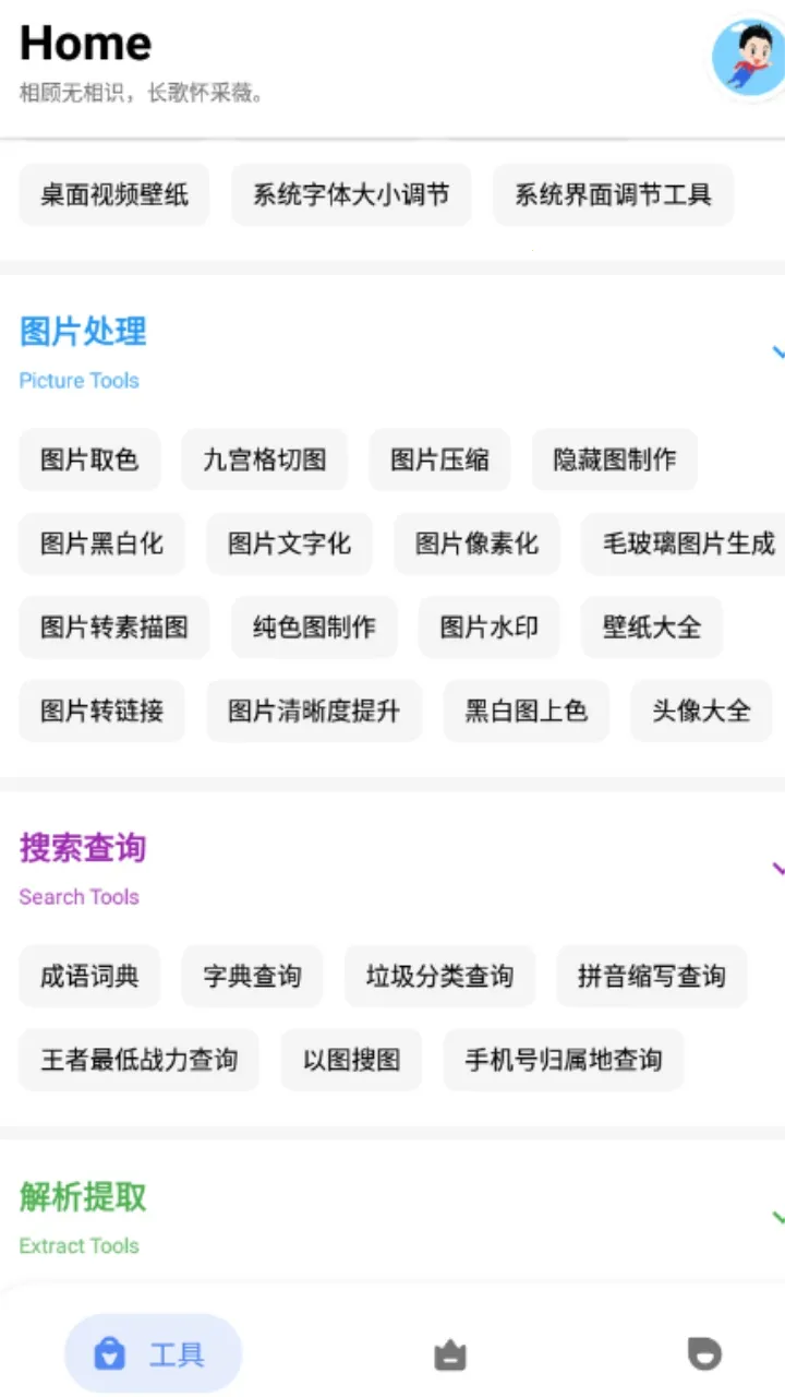 1. **工具丰富**:集成近100个实用工具,覆盖生活、系统操作、图片处理等多方面,满足各种需求。