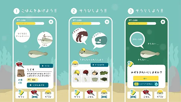2. 可通过净化水质、喂食等方式让它成长,解锁更多模样。