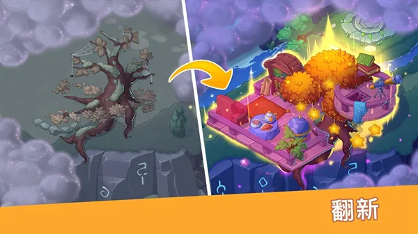 玩法丰富:能将三个及以上相同对象拖拽合成升级物品,解锁更多神秘元素推动剧情,还可种植植物换魔杖修复建筑,玩法多样充满趣味。