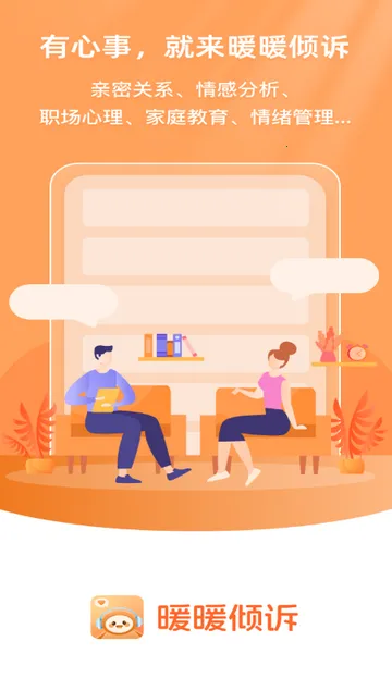 暖暖倾诉是一款专注心理健康的软件,为情绪困扰者提供专业测评,涵盖抑郁焦虑等。有安全倾诉空间、详细报告解析、免费求助渠道等功能,全方位保护隐私,精准评估,助力缓解压力,觉察自身状态。