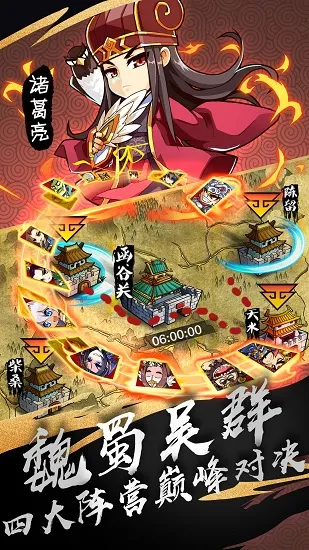 四大阵营对战,沙场点兵、酒馆招募、攻城伐地,带你回归波澜壮阔的三国世界。
