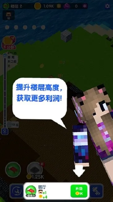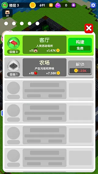 4、丰富建造元素:可堆叠方块从小塔开始建造独特摩天大楼,还有各种升级提升建造效果。