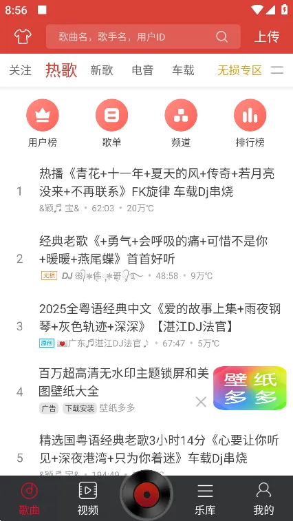 海量丰富资源:涵盖中文、英文、日韩等多语种,包含超劲爆电音、嗨曲、喊麦、经典老歌等,从3D环绕舞曲到车载夜店音乐,应有尽有。