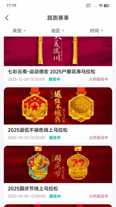 1. 赛事类型丰富:涵盖跑步、骑行、游泳等数十种运动类别,满足不同水平用户的多样化需求,无论是新手还是资深运动爱好者,都能找到适合自己的赛事。