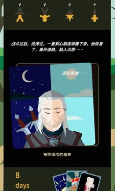 3. 透过吟游诗人视角,探索充满抉择与后果交织的精彩世界,左右滑动决定命运。
