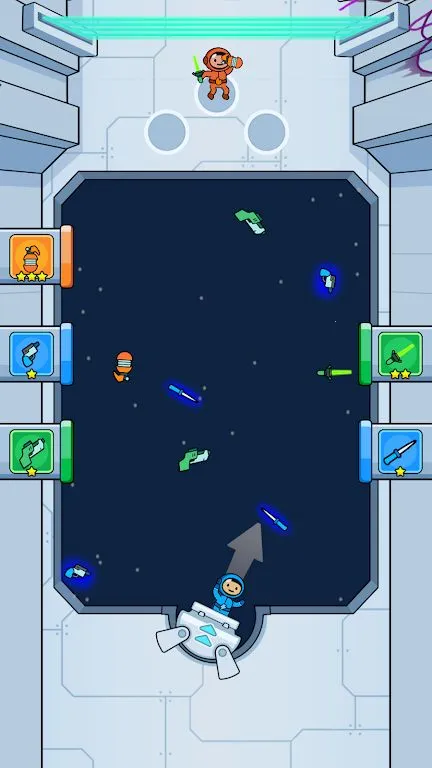 3. 零重力环境下的趣味战斗,宇航员需拾取武器、控制飞行轨迹避开障碍物并收集奖励,增添游戏趣味性。