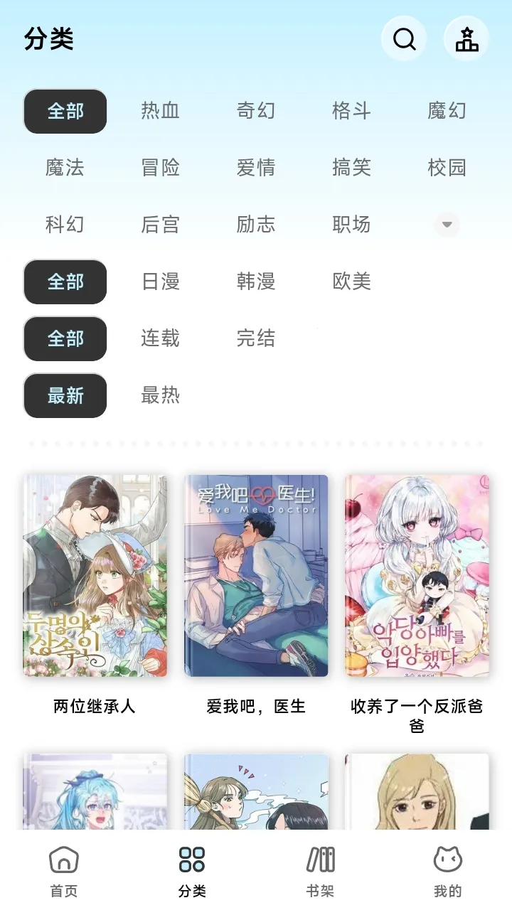 1. 海量资源,主流漫画类型全覆盖,日漫、国漫、韩漫、欧美漫应有尽有,资源库每日扩充,轻松找到心仪漫画。