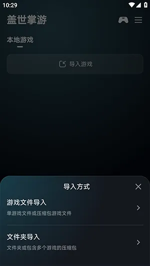 盖世掌游是一款超棒的复古游戏模拟器,对喜欢在安卓手机上玩各类游戏的人来说,简直是福音。它能支持NES、GBA等经典格式,适配多种手柄,还内置开源许可游戏。你想导入本地游戏吗?这超简单!打开软件后点击导入游戏,有游戏文件导入或者文件夹导入两种方式供你选择。选择完成后就能快速导入啦。它支持从手机存储、外部设备如OTG U盘或云盘导入合法拥有的游戏ROM文件,自动归类游戏,帮你构建个人专属复古游戏库。有了它,你可以轻松管理本地游戏文件,随时畅玩喜欢的游戏,找回童年的纯粹快乐。而且它画面能优化,还有即时存档读档等功能,提升游戏便利性,界面简洁高效,分类清晰,能让你快速开启游戏之旅,尽情享受复古游戏的魅力。