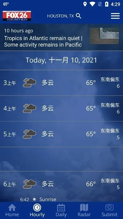 FOX Weather安卓版是一款手机天气预报软件,功能丰富,能预测全球天气,涵盖日出日落、雨量图、未来14天天气预警等。无空间限制,在搜索框输地点,就能查看任意位置详细天气。