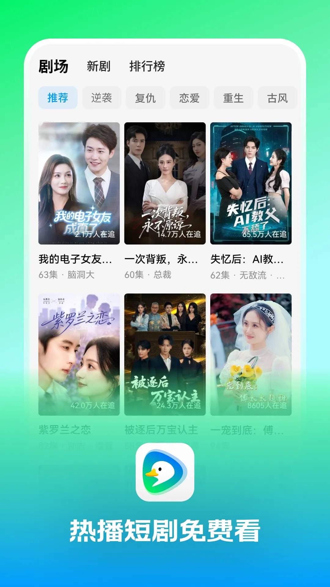 趣看鸭真的是短剧爱好者的福音!它汇聚了全网火热短剧,各种风格类型应有尽有。最让人惊喜的是,与传统单集付费短剧不同,这里所有剧集都能免费观看,直接追到大结局,内容超精彩!霸总追妻、玛丽苏女主文学、狗血穿越重生等题材,让人看得过瘾。