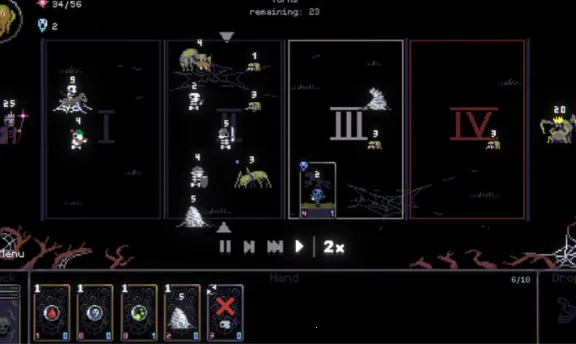 游戏优势多多,有轻量化肉鸽体验,不肝不虐,新手友好。战场分四个区域,部署策略影响结局。独特的骷髅卡牌系统,召唤需消耗更多魔力。游戏特点也很突出,像素画风独特,地图和事件随机生成。还能自定义成长路线,快速升级技能树。亮点是击败不同国王可解锁隐藏内容,打造专属军团,玩法自由度超高,简单易上手,还支持地图互动。新手玩法丰富,能组建多种不死随从卡牌流派,合理分配行动点,完成特定目标解锁成就。喜欢亡灵题材、策略卡牌玩法和像素黑暗风的,可千万别错过这款游戏呀!