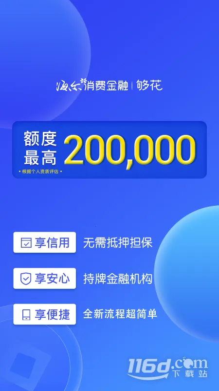 够花海尔消费金融是一款正规且实用的财务管理和记账助手应用。它能帮您轻松管理个人消费理财与预算。您可以记录每天消费,快速生成报表和图表,了解自身消费习惯。还设有智能预算功能,根据您设定的目标,实时监控并提醒消费情况,助您控制开支实现理财目标。其放款快,自动审核即时到账;费用低,还款轻松;额度灵活,最高可贷20万,随时随地想花就花,预支工资能预支月薪50%。还款也方便,支持银行代扣,能扣款的银行有工商银行、建设银行等。分期申请通过后,销售会提供还款指引,一般还款日为每月12日,还款日前3天会推送提醒。总之,够花海尔消费金融能很好地满足您在财务管理方面的需求,快来下载体验吧。