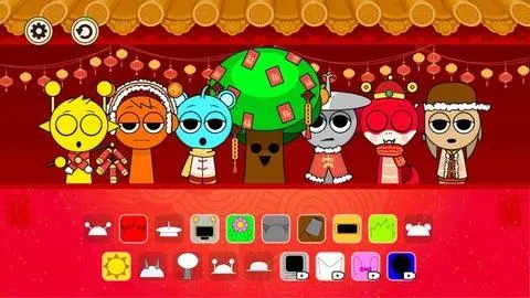 节奏盒子新年模组在原版基础上融入春节元素,背景改为喜庆红色,人物换装并手持红包灯笼。收录新年专属曲目与隐藏彩蛋,玩家拖动道具即可混音演奏,体验热闹节日氛围。