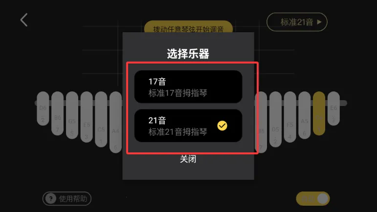 2、支持17键与21键琴型切换,适配多种主流拇指琴型号,满足不同调音需求。
