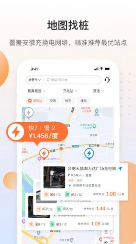 全省覆盖:整合安徽全省超23000个充电桩和2600余座充换电站资源,实现线上一张网智能管理,覆盖安徽全省主要城市及高速服务区。