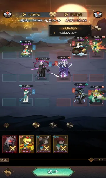 3、战斗方式经典,回合制玩法,上场多位角色释放技能,策略性十足。