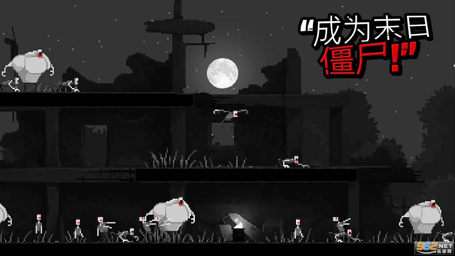 画面风格:采用精致像素美术风格,细节处理用心,角色眼部设计赋予僵尸生动表现力,营造独特末日氛围。
