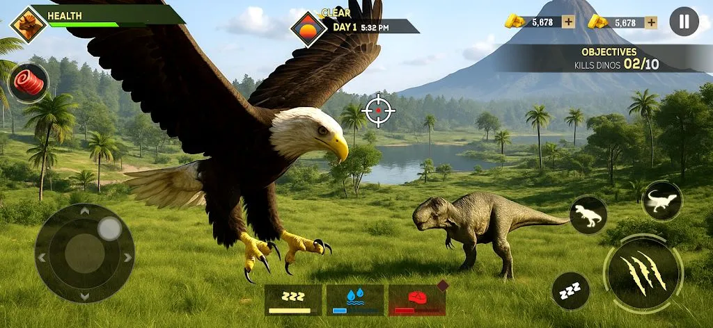 2、广袤的开放世界:踏入生机勃勃的开放世界,这里充满掠食者、猎物、隐秘区域和远古秘密。穿越丛林之心、水晶湖、热带草原等多种生物群落,尽情探索。