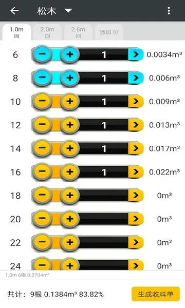 1. 支持多规格计算,涵盖原木、原条、椽材、板材、方材等多种木材类型,输入相关参数即可自动生成材积结果。