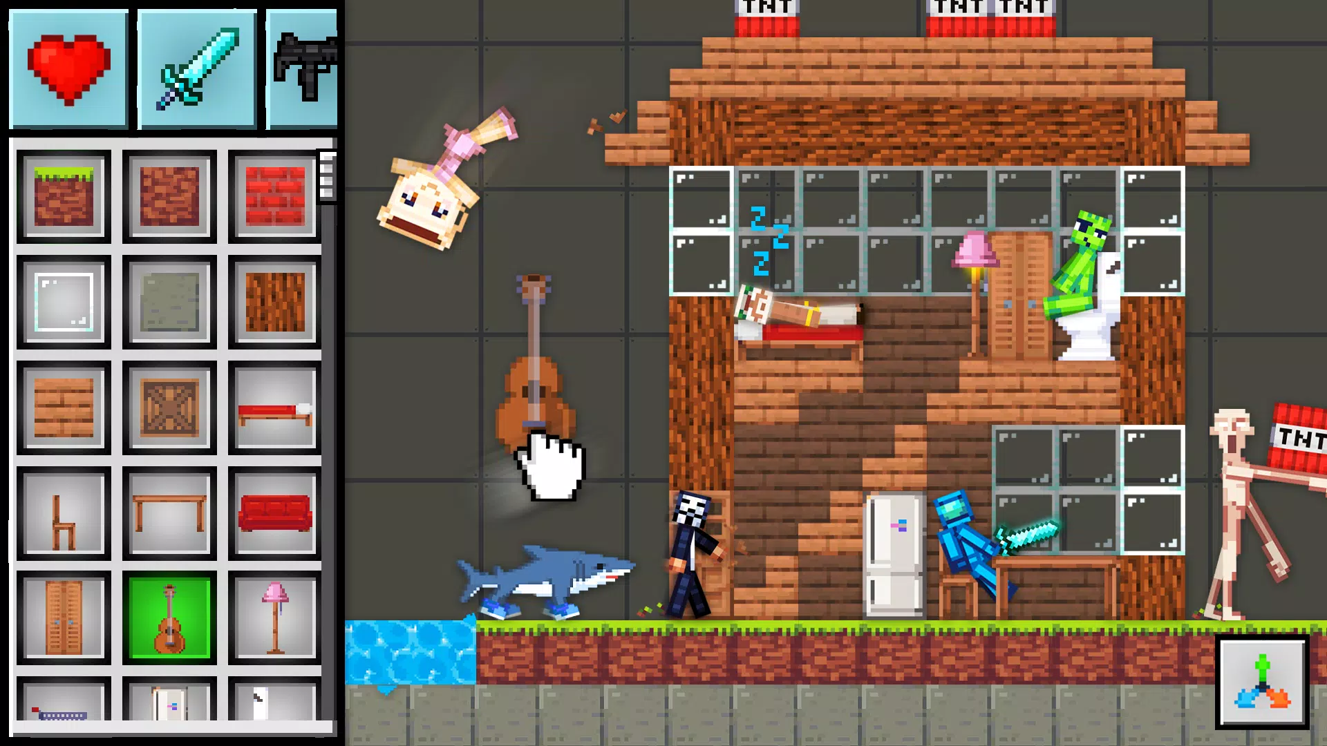 1、物理引擎驱动:所有互动由一致的像素级物理引擎驱动,确保动作流畅连贯,如布娃娃角色对作用力和伤害反应逼真,武器与物理系统完全融合。