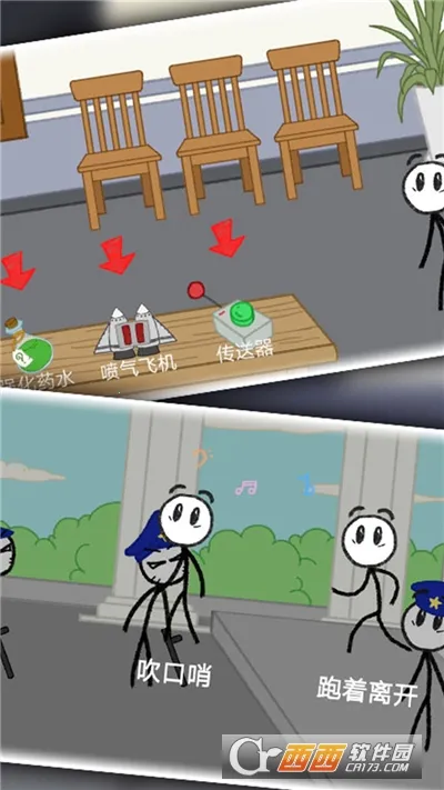 轻松画风:经典火柴人形象,诙谐轻松的二次元画风,操作界面友好。
