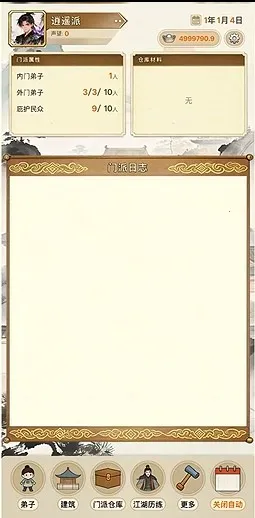 这款游戏玩起来十分带感。在管理门派时,那种对银两流动的把控以及对弟子培养方向的抉择,充满了策略性。招收弟子看着他们成长,很有成就感。建筑的建造与升级,一点点构建起完善的门派体系。随机触发的各类事件,让江湖充满未知与变数。特别是派遣弟子外出闯荡,每次都期待能带回丰厚奖励。在处理门派日常、弟子纠纷等事情时,仿佛真的置身于江湖之中。每一次决策都关乎门派走向,从默默无闻到威震四方,这个过程紧张又刺激,让人沉浸其中,书写属于自己的江湖传奇。