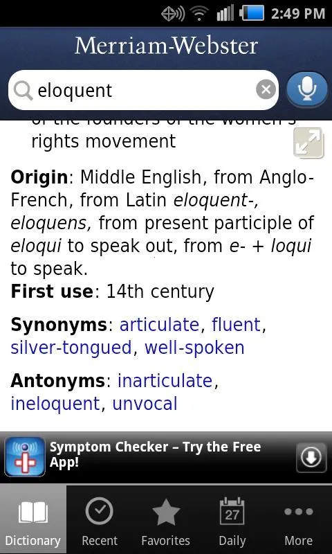 内容源自权威韦氏词典体系,全面收录单词释义、地道例句、同义词、反义词及详细用法说明,能帮用户精准掌握词汇在真实语境中的表达方式。