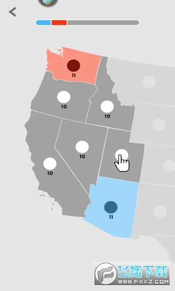 游戏以像素形式呈现,不同地区军事实力不同,进攻前要谨慎应对、制定战术。玩法简单易上手,刚进游戏选颜色后点击开始,地图分敌我和中立区域,拖动圆点派遣单位攻击扩张,比拼单位数量占领地块,还能多地块协同攻防。占领全部地块获胜得金币奖励,胜利后可解锁升级功能,通关还能获礼包。后期关卡势力更多,更具策略性,让你尽享帝国扩张的乐趣!