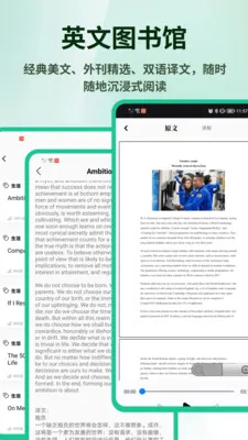 英语外刊精读(英语口语学习)助力用户便捷学英语口语,提供口语场景发音示范、实时语音跟读翻译,可英文对话练习,还有单词速查、句式学习,助找地道表达与标准发音,是提升口语的好工具。