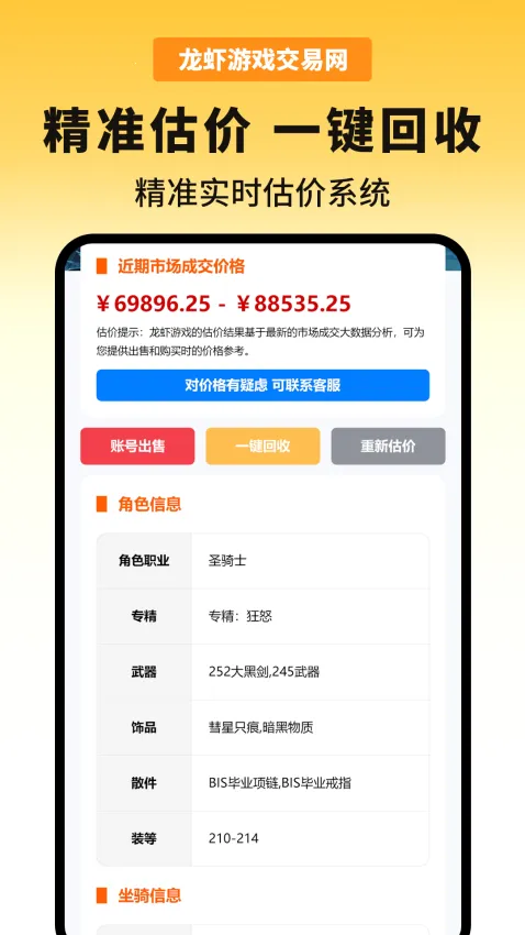龙虾免费短剧(游戏交易平台)是专注游戏虚拟物品交易与账号服务的移动应用。全品类覆盖主流游戏,有三重保障体系,具备智能估价等特色,严格遵守规定,提供专业风控、极致体验、透明环境及完善售后。