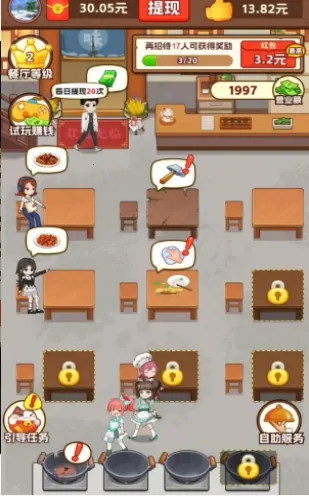 想在手机上轻松体验经营饭馆的乐趣,还能领红包吗?“我的小饭馆”游戏就能满足你!在这里,你能从零开始打造专属餐馆,从选址、装修到菜品制作一手把控。根据顾客下单顺序精准烹饪,别让顾客久等。随着店铺等级提升,可解锁更多位置。菜品制作虽需时间,但锅具充足。完成订单不仅能积累财富升级店铺,还有红包奖励可拿。游戏亮点多多,能招募员工提供优质服务,不断解锁新菜品,点击一键揽客快速招揽顾客。下载游戏,阅读并同意协议后,授权微信登录,就能开启美食经营之旅,在忙碌又温馨的厨房场景中,应对随机订单,满足顾客需求,收获满满收益,解锁更多精彩,轻松赚取红包!