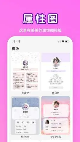 3、多样化模板素材库,有多种风格属性图模板,布局配色和字体设计独特,可直接选用。