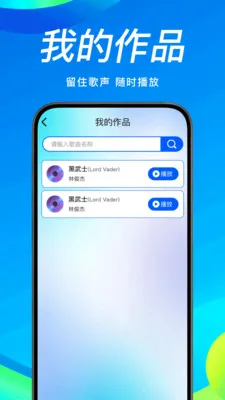 作品专属归档棒,录制完成的作品自动存入我的作品专区,可搜索查找特定作品,随时重温自己的演唱。